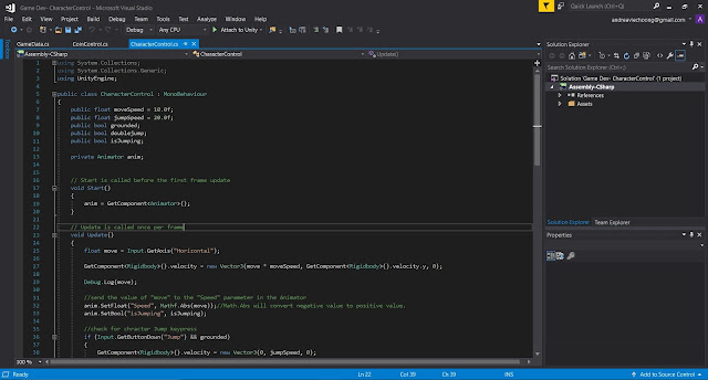 Fig 1.5 Script for character control between idle and run
